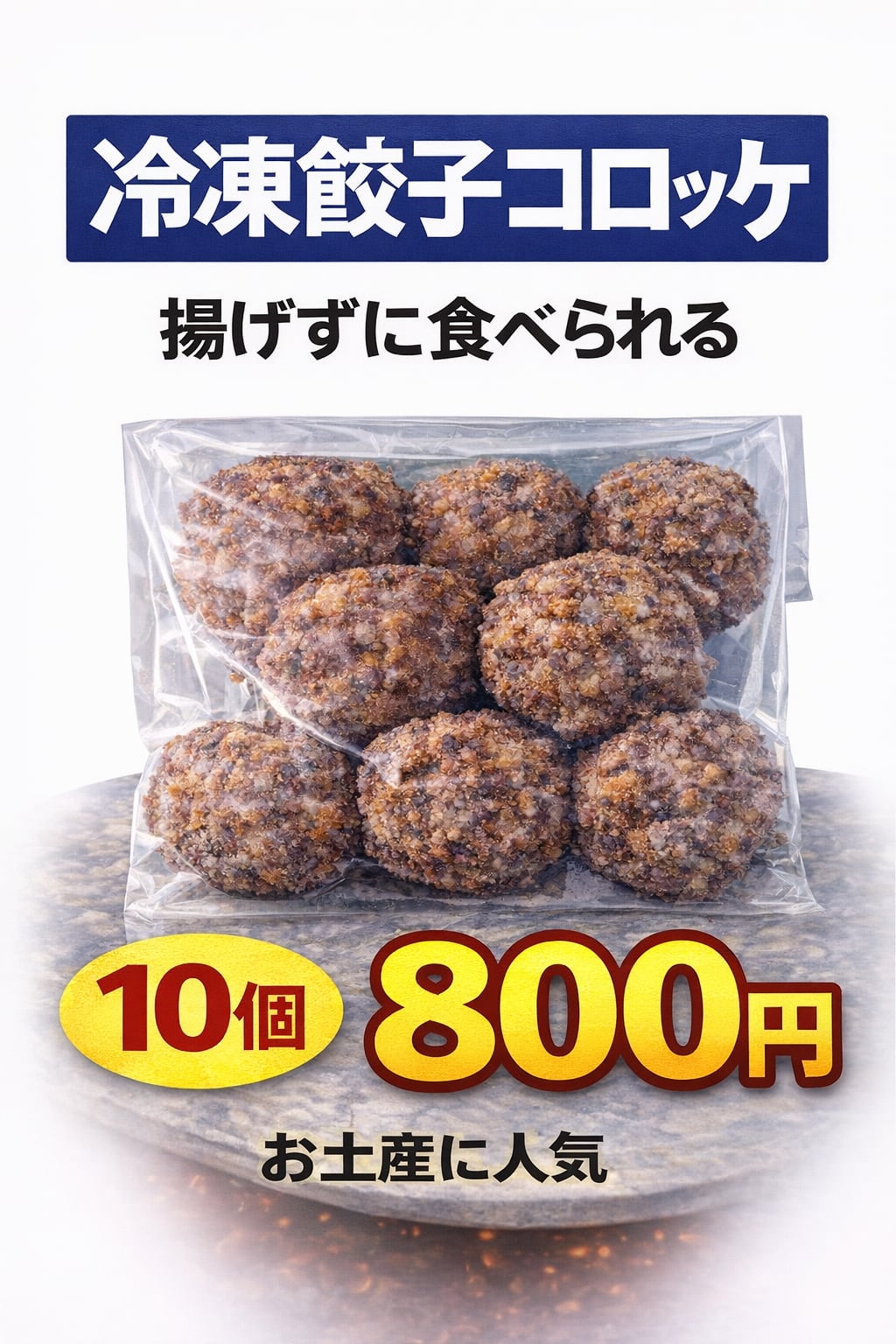 この餃子コロッケは、新鮮な具材を贅沢に使用しており、外はカリっと、中はジューシーな食感が魅力です。一つひとつ、心を込めて手作りされていますので、食べるたびに温かい思いが伝わってきます。